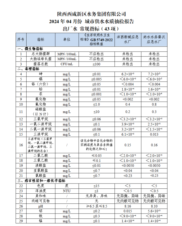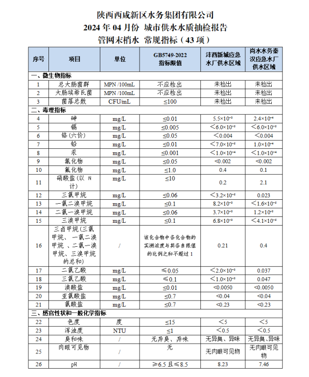 sunbet申愽官网水质信息公示报告(2024年4月)